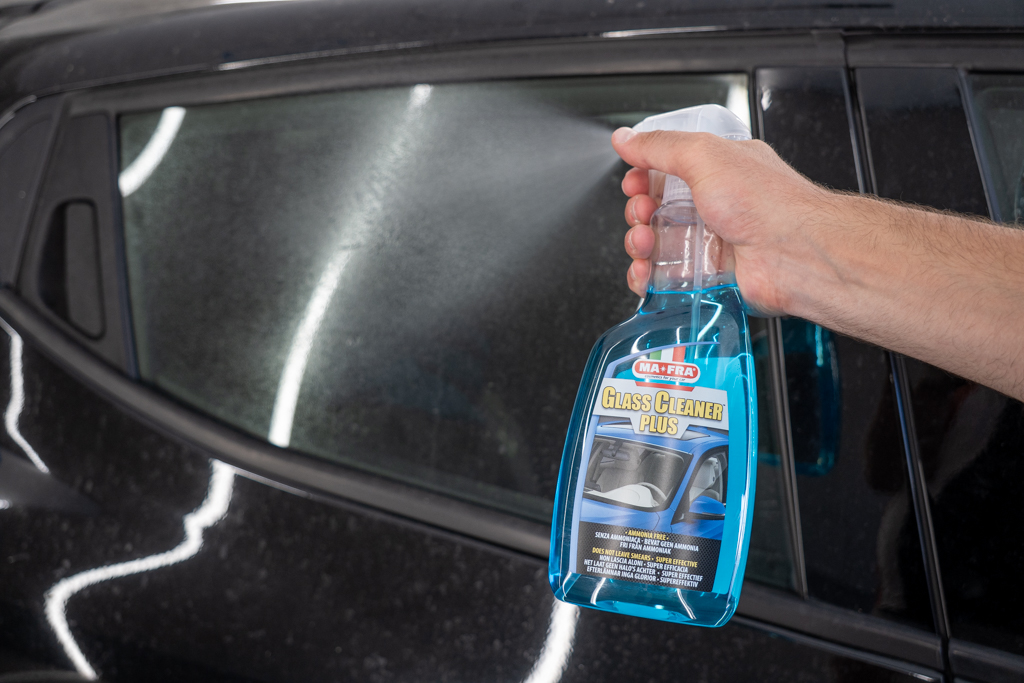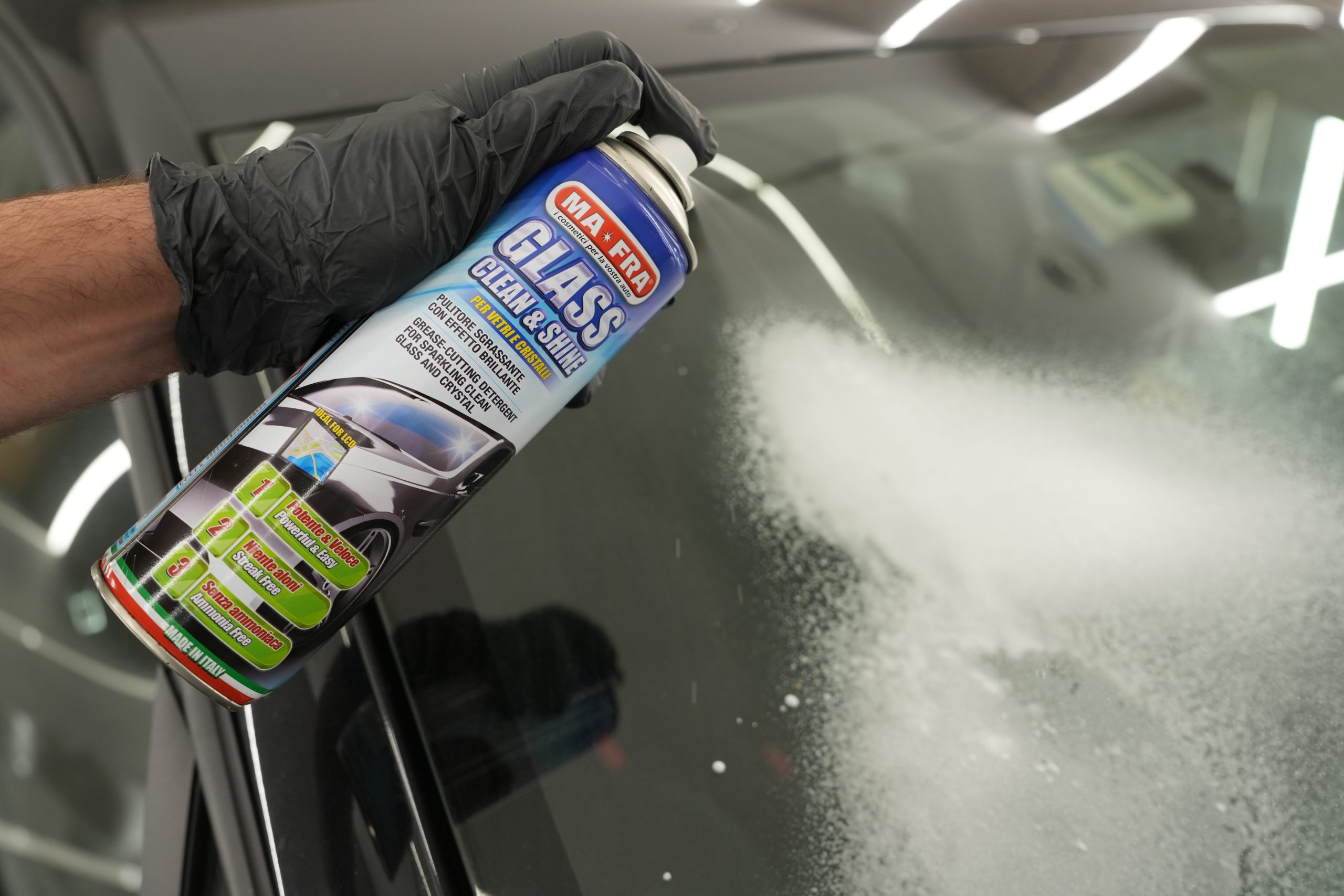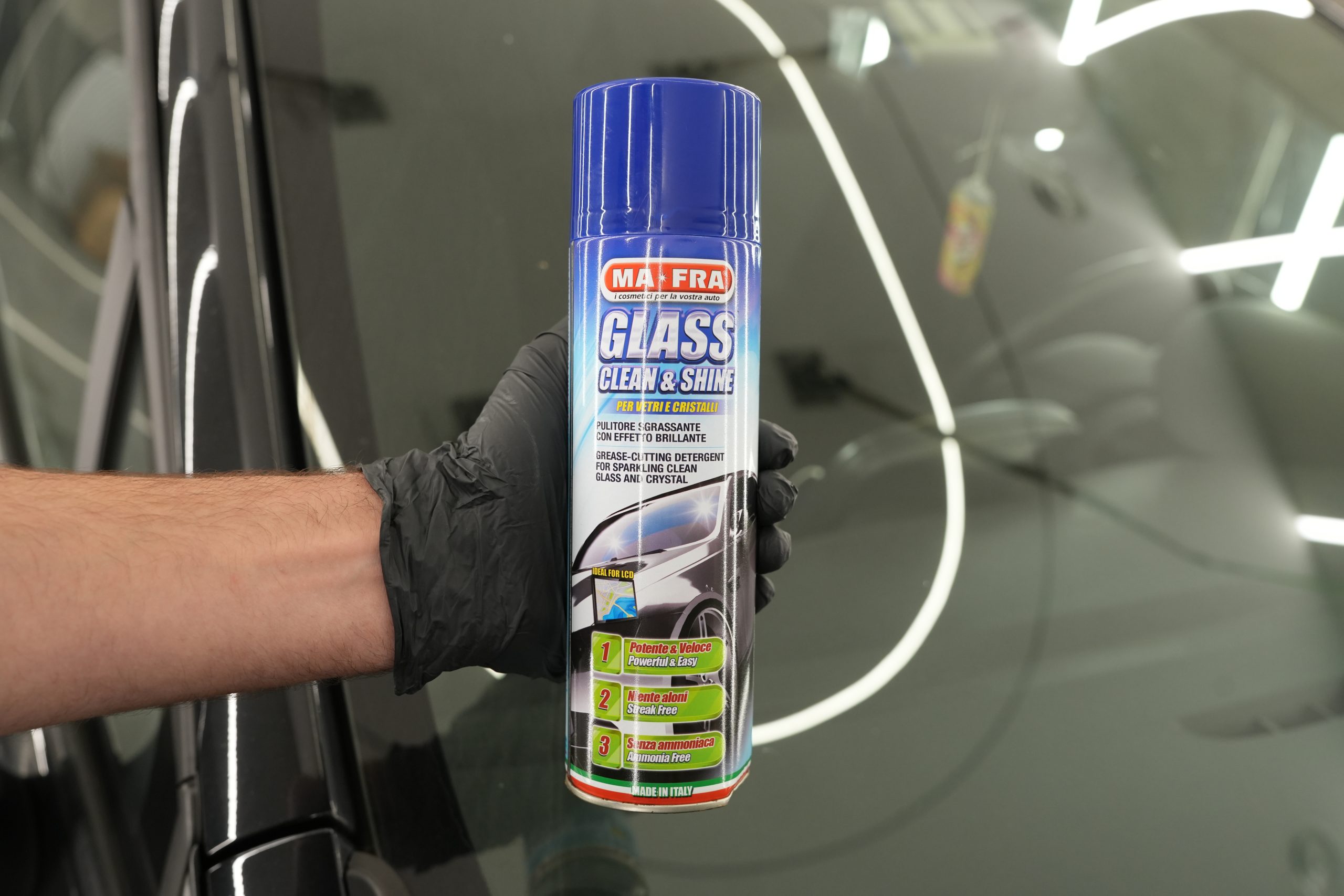 GLASS CLEANER PLUS è il nuovo pulitore per vetri auto studiato dai laboratori Mafra per la rimozione rapida dello sporco più ostinato da finestrini, schermi di navigatori, parabrezza, lunotti
