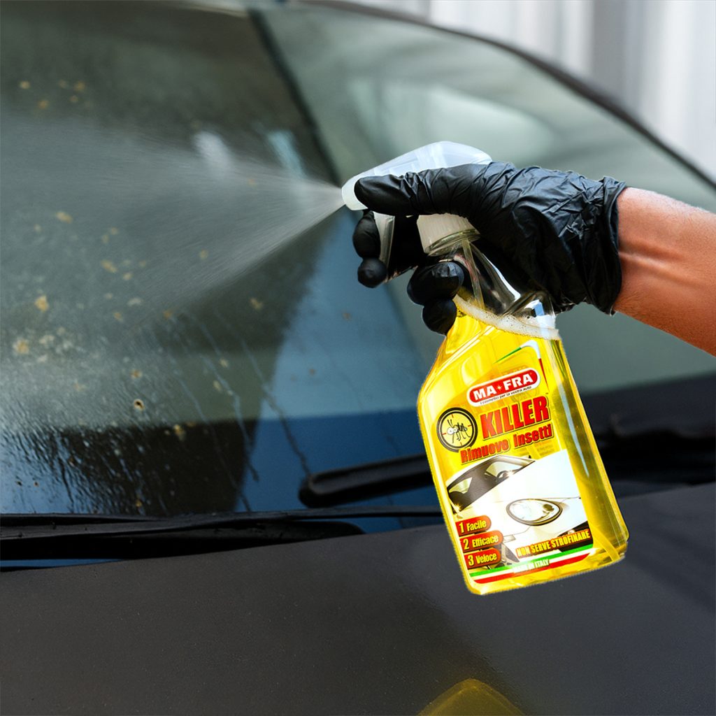 Utilizza Killer di Mafra per la rimozioni degli insetti, il prodotto è adatto per la rimozione di insetti da carrozzeria, vetri e cristalli, paraurti e vetri della fanaleria. Scioglie qualsiasi residuo di insetto, anche secco in pochi istanti.