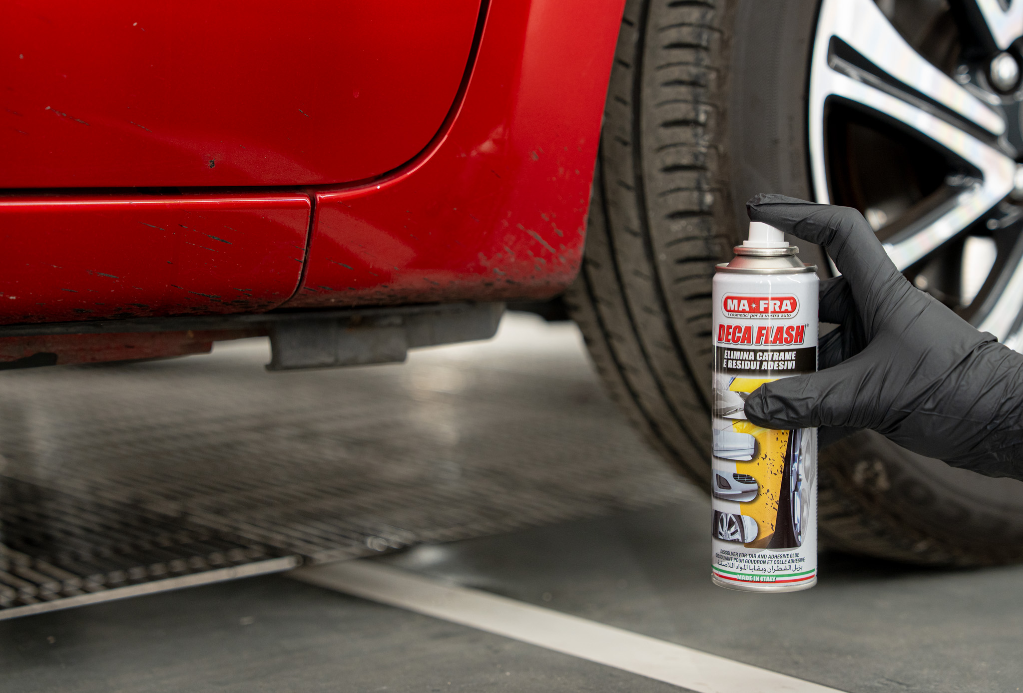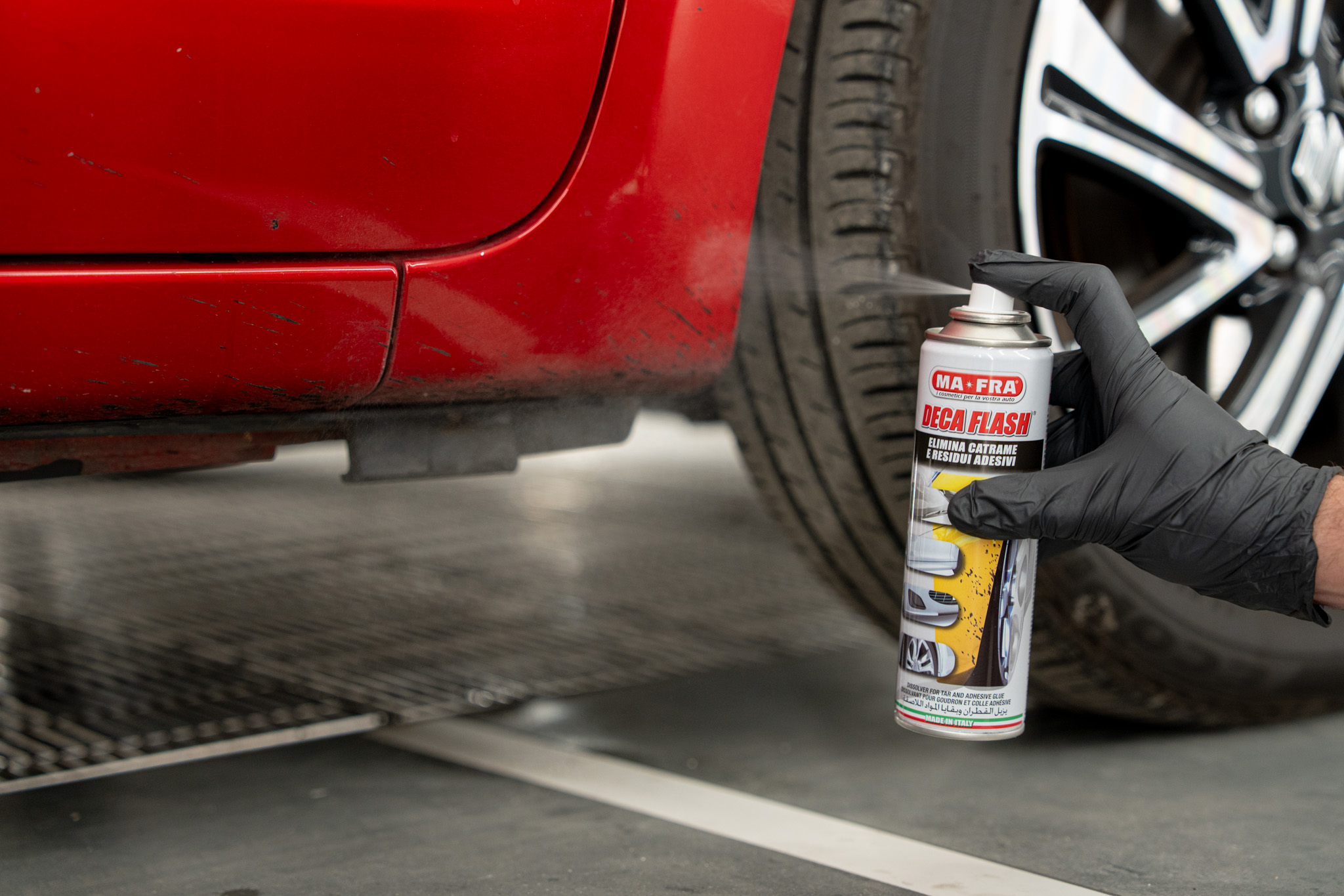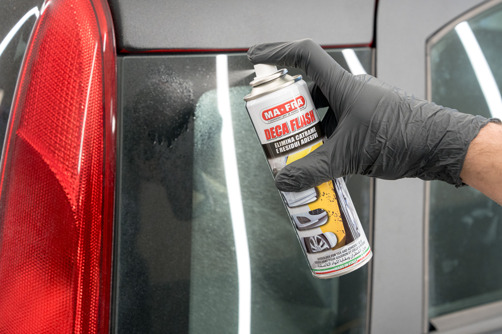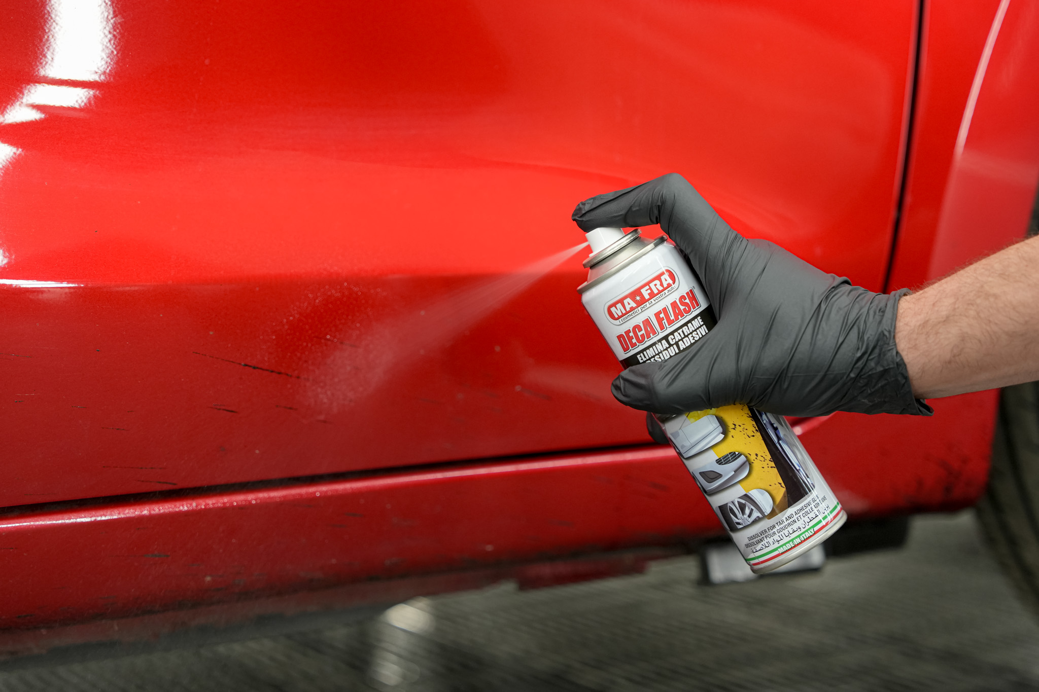 Quando si parla di prodotti professionali, uno dei migliori in commercio è DECA FLASH di MA-FRA. Questo spray è stato studiato appositamente per sciogliere e rimuovere catrame, resina e residui di colla senza intaccare la vernice. Ecco perché è così apprezzato: