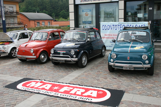 La cornice delle Prealpi Orobiche ha fatto da scenografia per il raduno FIAT 500 nel suggestivo centro storico di Clusone: lo spettacolo del famoso paesino della bergamasca ha esaltato le auto presenti, tutte lucenti e curate con i prodotti MA-FRA.