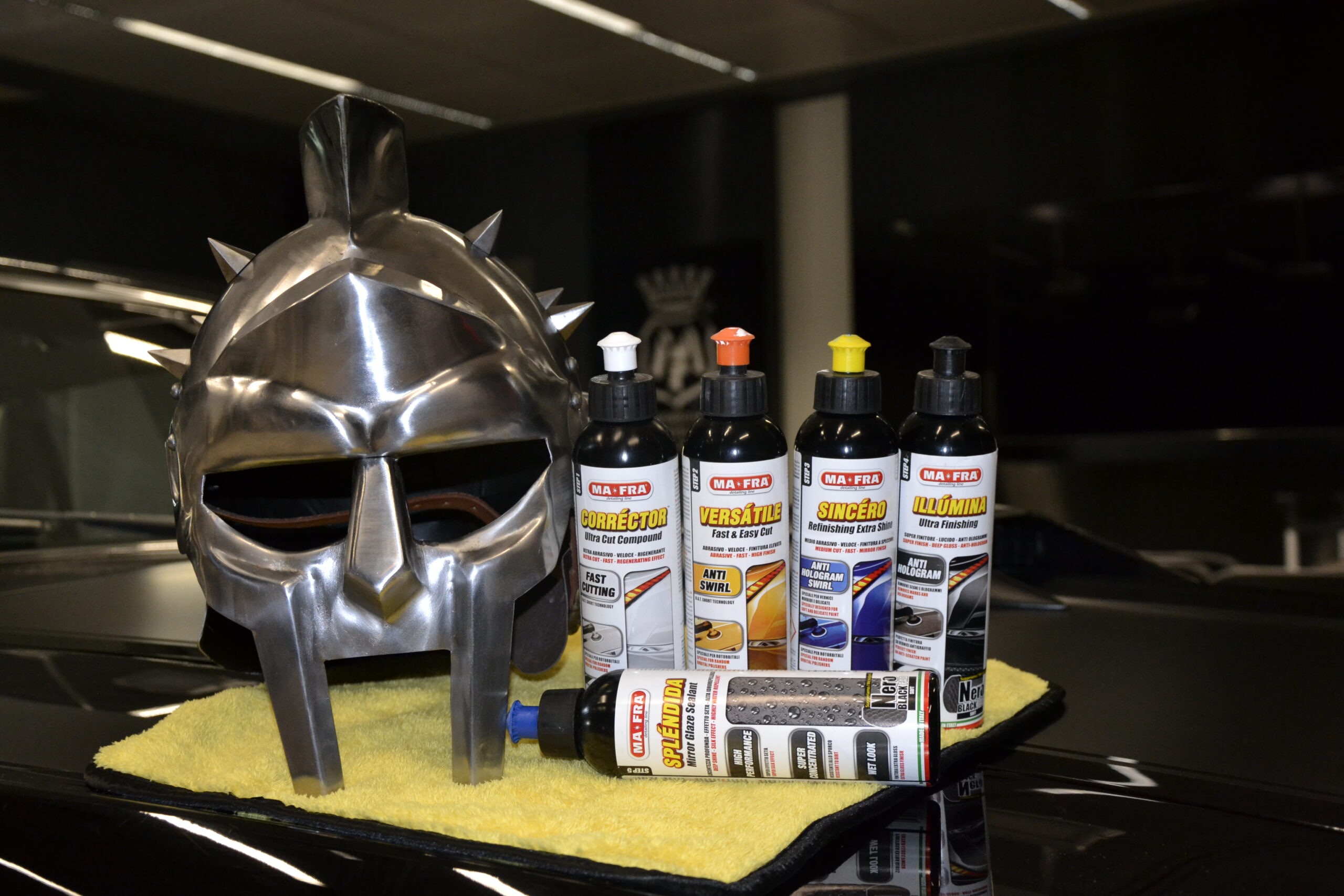 Inoltre, per offrire ai detailers un servizio ancora più completo, Mafra ha introdotto nella sua gamma anche attrezzature frutto di una approfondita ricerca e selezione. Stiamo parlando delle nuove lucidatrici “Gladius” che si suddividono in 2 tipologie, rotorbitali e rotative, dei nuovi tamponi formato XL, per operare su superfici più ampie rispetto ai precedenti tamponi da 5’’ e di conseguenza tutti gli accessori che servono al detailer per eseguire al meglio il suo lavoro, polish, panni in microfibra, lampad di ispezione, etc…