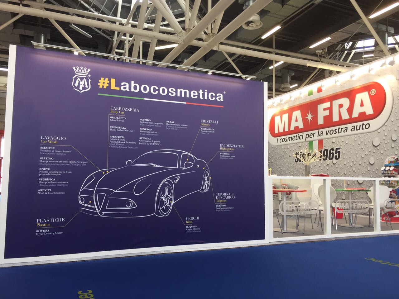 Grande ricerca è stato dedicata ai prodotti ad alto valore aggiunto come ad esempio, il programma polish che comprende, oltre al famoso Mafralux, il nuovo polish Lotus Juice, il primo vero polish sigillante per autolavaggio.