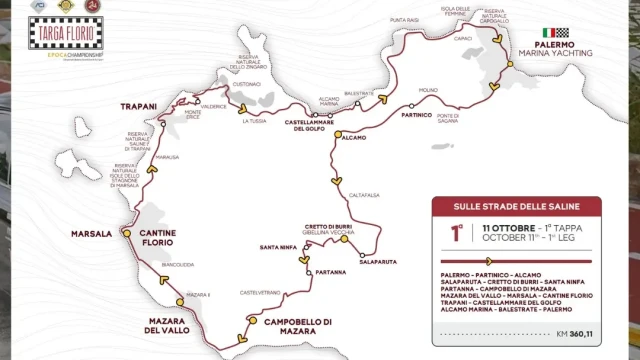 Venerdì 11 ottobre alle 8.30 scatta la prima tappa, battezzata “Sulle strade delle Saline”; la sosta per il pranzo è prevista presso le Cantine Florio di Marsala. Le vetture fanno ritorno a Palermo a partire dalle 18.15.
