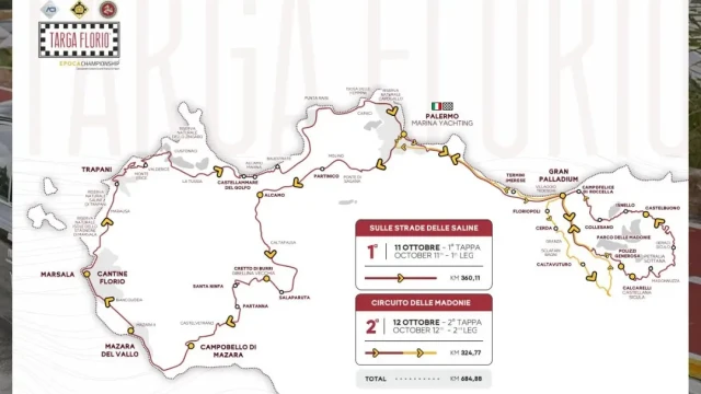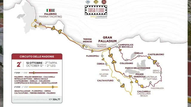 La Targa Florio Classica prevede quest’anno due tappe, per un totale di 685 chilometri. Il programma inizia mercoledì 9 ottobre alle 15.00 con le verifiche tecniche e sportive e la distribuzione dei road book.